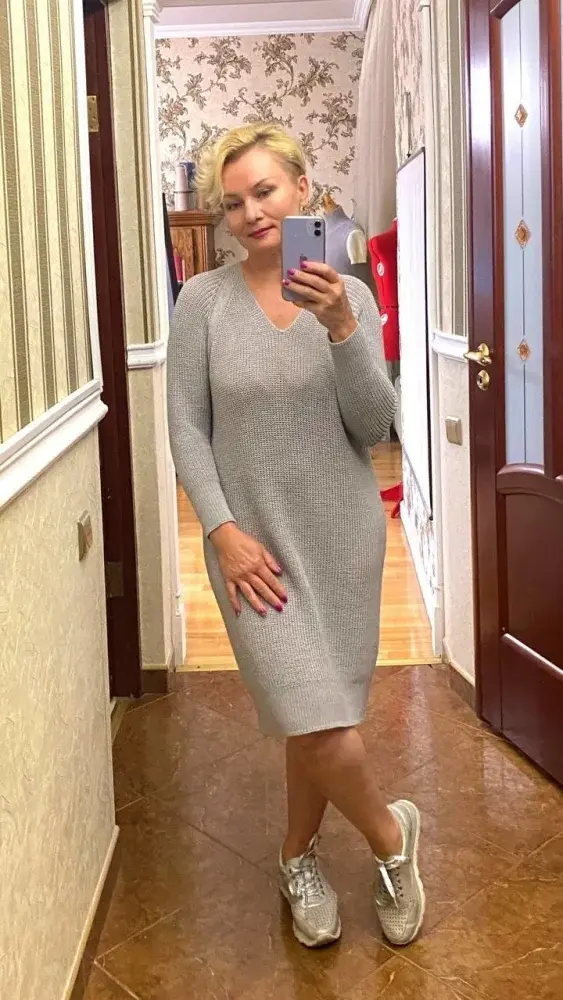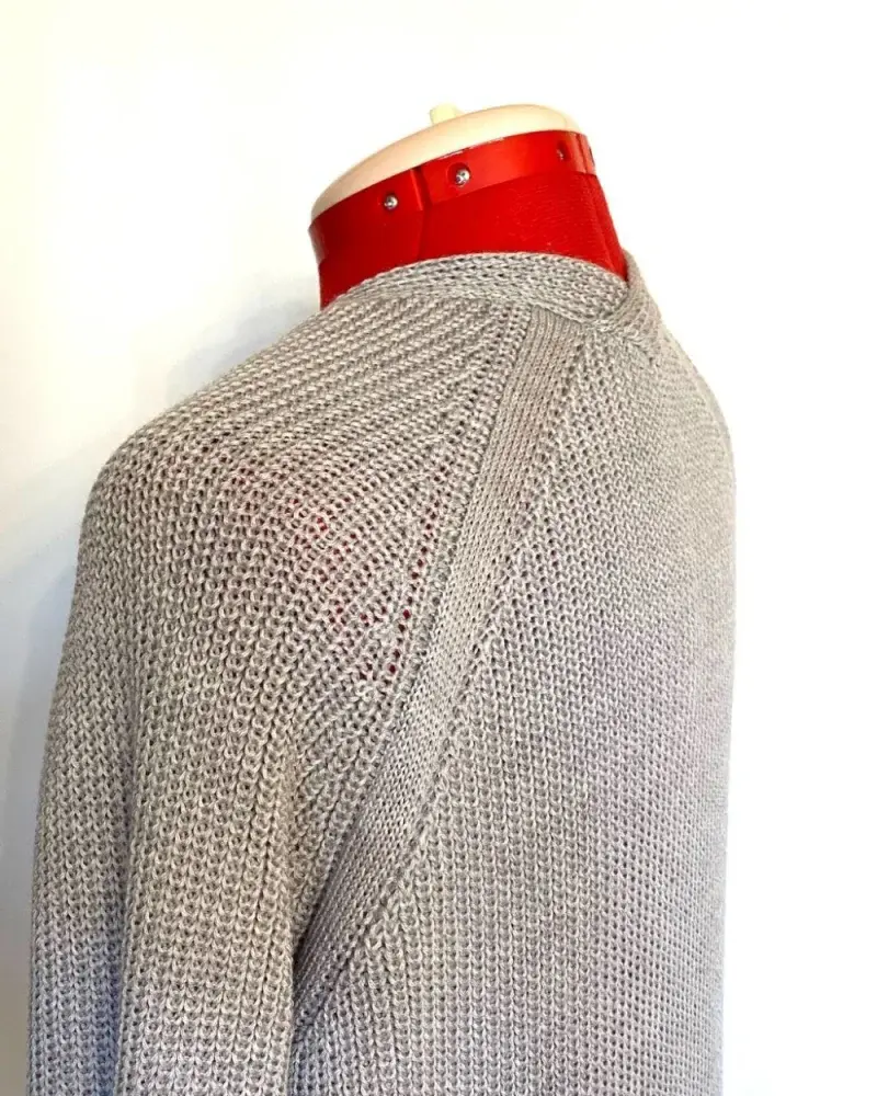 Платье IRSEN. Это невероятно красивое платье связано жемчужной резинкой для прохладного времени года. Особенность его заключается в оригинальном исполнении цельновязанной горловины в сочетании с декоративными планками вдоль линии реглан. В таком платье вы будете чувствовать себя уверенно и готовы принимать комплименты. Пряжа меринос Zegna Baruffa Sublime 2/48 в 4 сложения Вес 450г/550г Петельная проба 34п*58р, плотность 4/4
