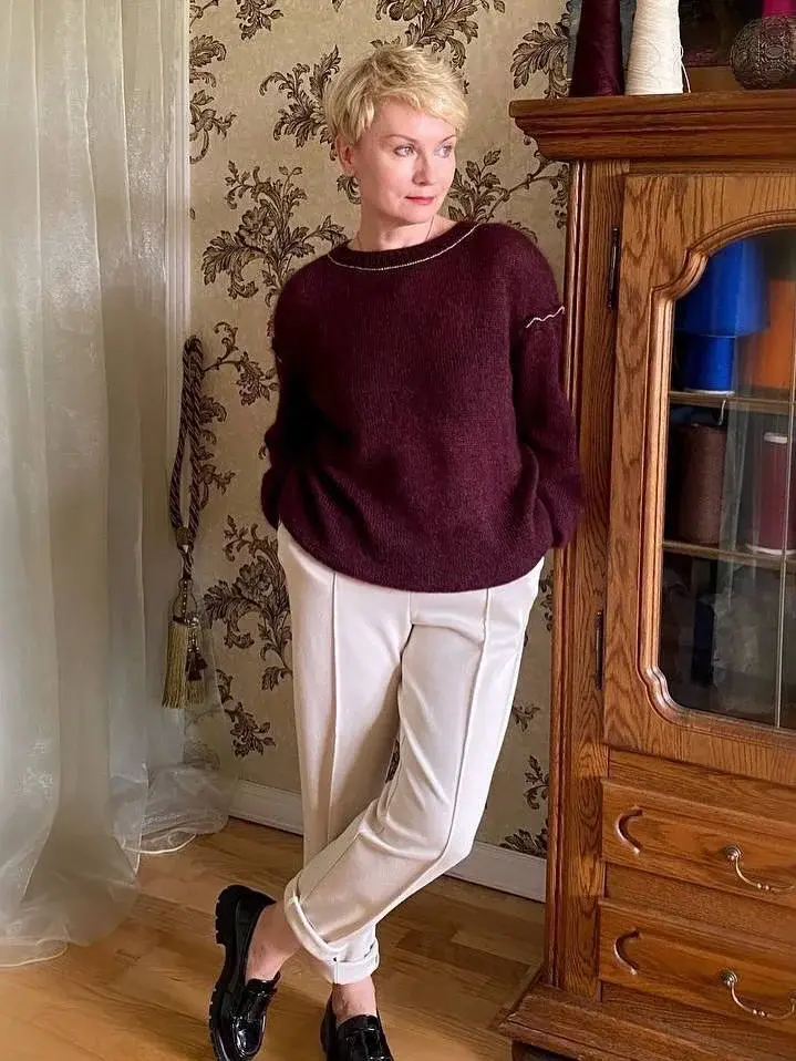 Название Аврора говорит само за себя - это артикул суперкидмохера на шелке от Filcom 850м В микс добавлена нить кардного мериноса 1500м и люрекс. Смешивайте пряжу с люрексом только этажеркой, иначе полосы будут бросаться в глаза. С виду простой джемпер имеет ряд особенностей кроя и исполнения плеча, проймы и рукава. Пряжа Filcom Aurora суперкидмохер 70% шелк 30% 850м + Zegna Baruffa меринос 1500м + Frizzante люрекс на вискозе 3000м= 450м /100г Вес 250/280г