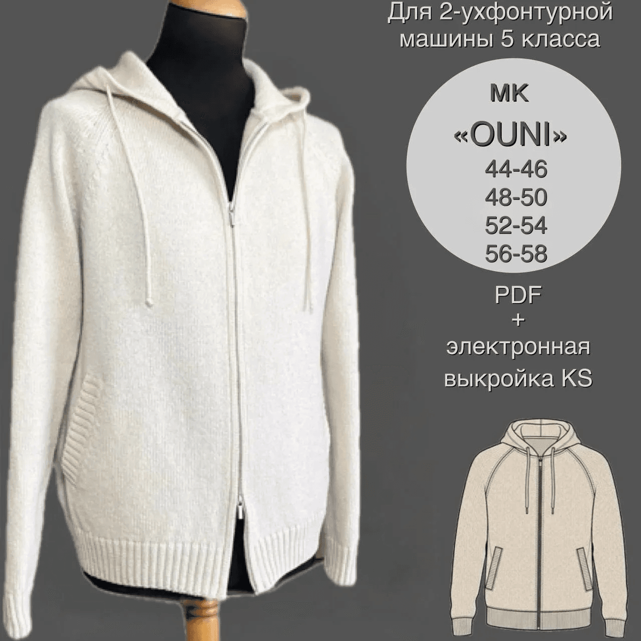 Мужская толстовка OUNI — это уютная, стильная и невероятно удобная вещь, которая станет частью повседневной жизни. Реглан идеально садится по фигуре, обеспечивая максимальный комфорт. Капюшон мягкий, глубокий на шнурке, который позволяет регулировать его по настроению. Молния разъёмная: можно расстегнуть полностью или оставить застегнутой под горло для прохладной погоды. По бокам два удобных кармана с клапанами. Низ и на манжеты - промышленная резинка. Толстовка связана из кардного мериноса — мягкого, лёгкого и приятного на ощупь. Такая вещь легко становится любимой: дома, на прогулке, в кафе — поверх футболки или под куртку, она всегда к месту. Пряжа: пряжа меринос 800м/100г в 2 сложения, плотность вязания 9.., вес 500г, петельная проба 27п*37р