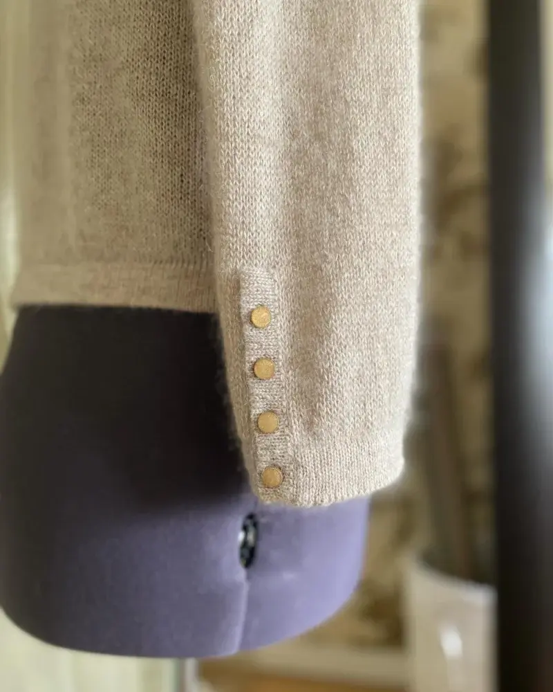 Кардиган в стиле Chanel - это нечто особенное. Его уникальность в абсолютно премиальном составе пряжи, выполненном вручную. Готового состава не существует в природе. Изысканность и статусность изделия подчеркнута акцентными деталями - настоящими карманами с листочкой и шлицами на рукавах. Золотые металлические пуговицы с перламутровой заливкой на ножке - идеальный декор деликатно мерцающего объемного полотна. Посадка - по фигуре, однако не стоит ограничивать себя… вполне допустимо взять для себя на два размера больше 😜🤩 ℹ️Пряжа микс Filcom Aurora суперкидмохер на шелке 850м + Loro Piana Sport кашемир на шелке 1350м + люрекс золото на вискозе 3000м Общий вес 300/400г